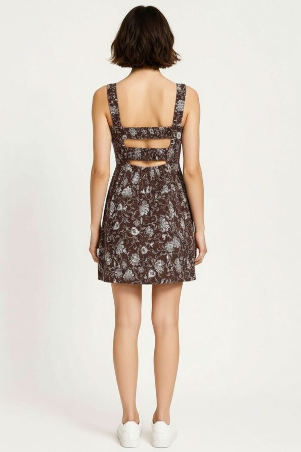 Vestido full print floral, escote cuadrado con abertura y cintas de amarre, tirantes anchos de smock