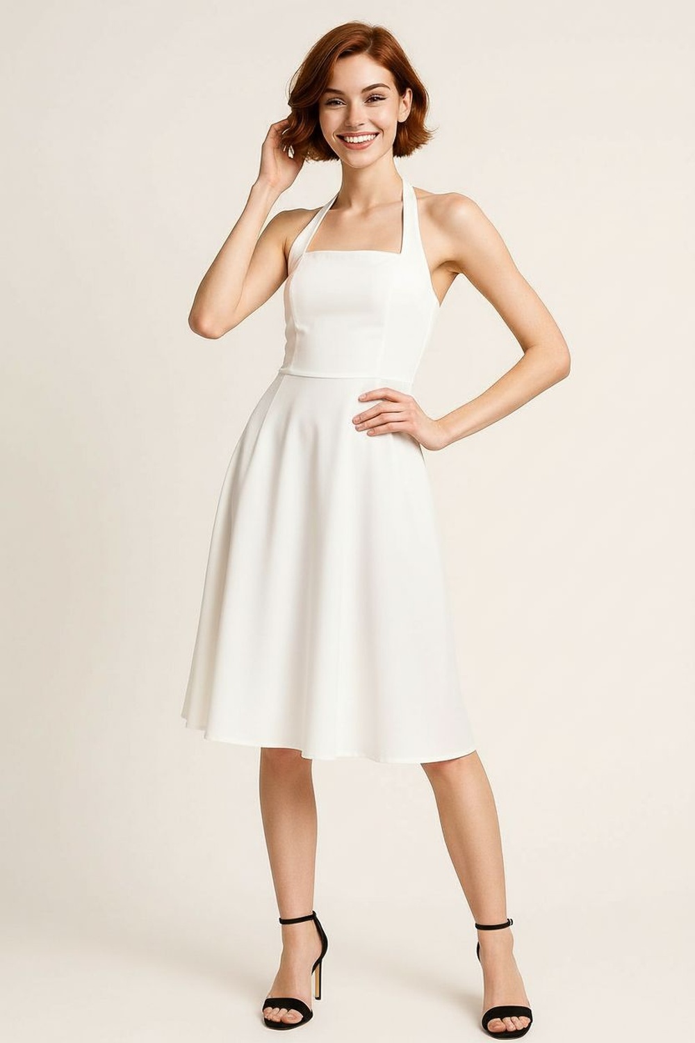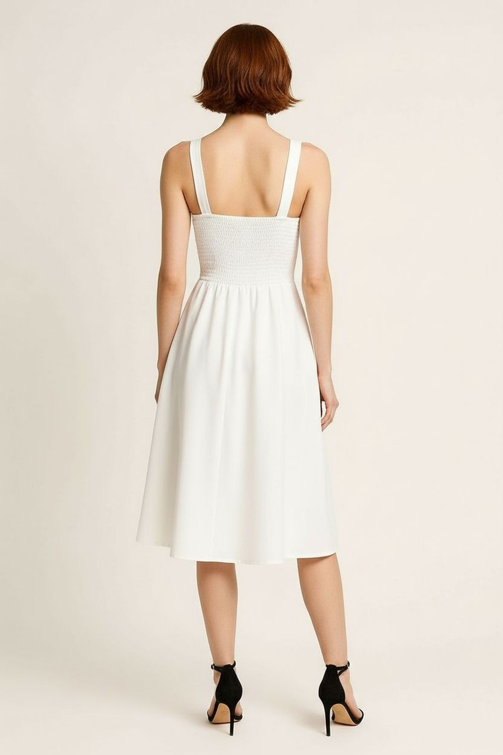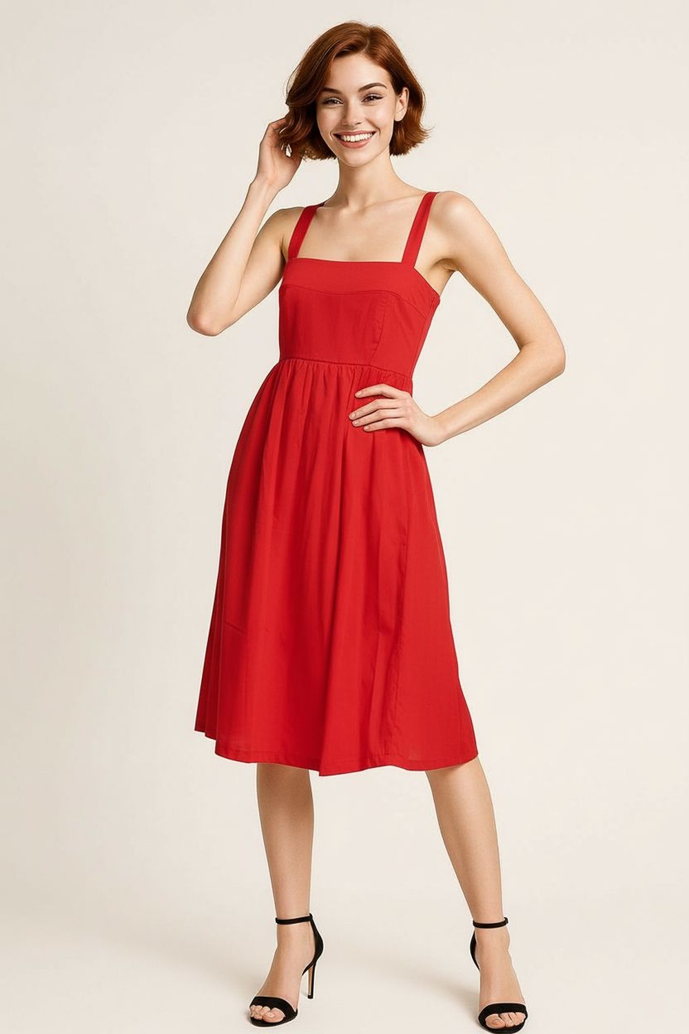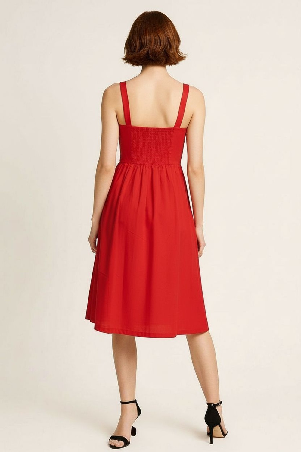 Vestido con tirantes escote en v ajuste superior falda de caída amplia largo midi estructura ligera